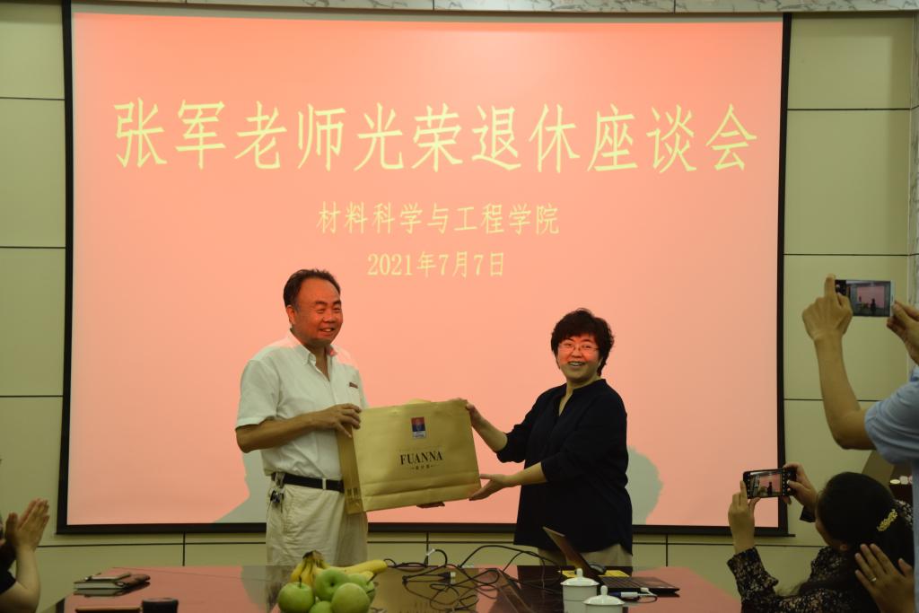 申兆亮宣读了退休文件,为张军老师颁发了退休证。申兆亮对张军老师从教四十多年来为学院各项事业发展做出的贡献和辛勤的付出表示感谢,对张军老师今后的退休生活表示祝福,希望张军老师退休后继续心系学院、为学院发展积极建言献策。