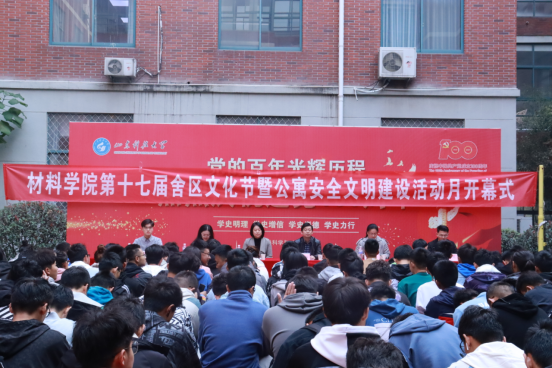 10月31日上午,威廉希尔williamhill官网在J2教学楼文化广场成功举办第十七届舍区文化节暨公寓安全文明建设活动月开幕式。公司党委副书记兼副经理李建楠,团委书记马韶霞,团委老师薄艳艳、李坤、林振德、石臻及2021级全体新生参加本次活动。