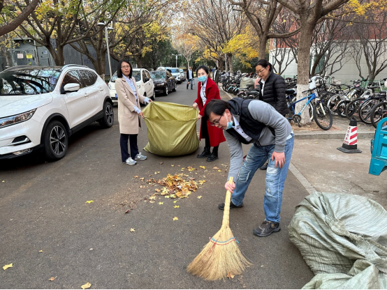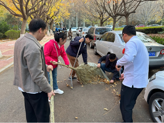 本次活动由公司党委书记申兆亮带队,学院全体教工党员和部分教师参与校园部分主干道路的落叶清扫。活动中老师们争相行动,热情似火,动作麻利。大家手持清扫工具,分工合作,伴随着欢声笑语,很快将马路重归整洁。
