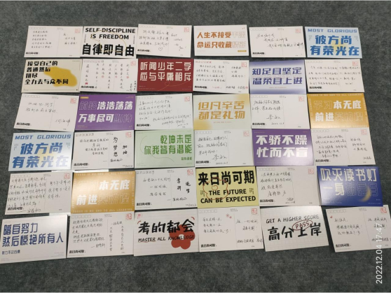 上午八点,威廉希尔williamhill官网的学子们纷纷来到繁星广场为考研的学长学姐们送去温暖与祝福。同学们到达活动地点后,在印有“高分上岸”图案的明信片上写下对即将步入考场的学长学姐的美好祝愿,同学们井然有序的写下一条条发自内心的真诚的祝福,希望学长学姐们蟾宫折桂、金榜题名。在活动结束后,主办方收集好老师和同学们所有的祝福卡片,带着全院师生的祝福,给紧张的备考的毕业班同学们送去温暖。