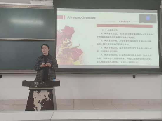 会上,于喆老师从入伍的基本政治条件、基本身体条件、入伍的优惠政策、入伍的发展方向等方面对应征入伍政策进行了细致讲解,让同学们对老员工毕业应征入伍有了更清晰的认识。赵英琦结合自己在军营中的真实经历,分享了军营中的趣事和感悟,让同学们对军营有了全新认识。