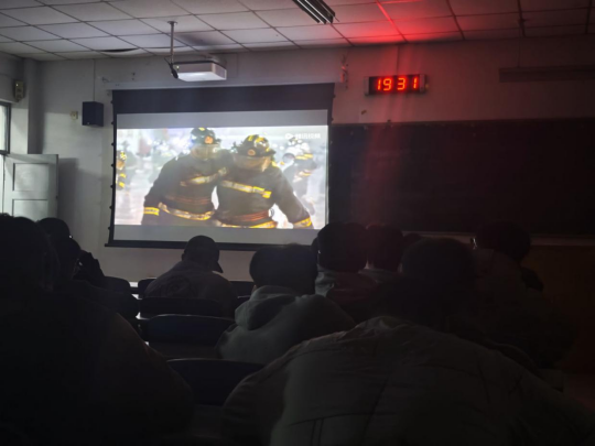 活动开始,主持人讲述电影《烈火英雄》蕴含的雷锋精神。《烈火英雄》是一部描绘消防员英勇事迹的电影,通过紧张刺激的剧情和真实感人的故事,展现了消防战士们面对火海不畏艰险、舍生忘死的英雄气概。放映中,同学们认真观看。经过两个小时的观影,同学们深刻认识到,雷锋精神并不仅仅体现在惊天动地的壮举上,更蕴含在平凡岗位上的默默奉献中。电影放映完后,同学们有序退场,活动宣告圆满结束。